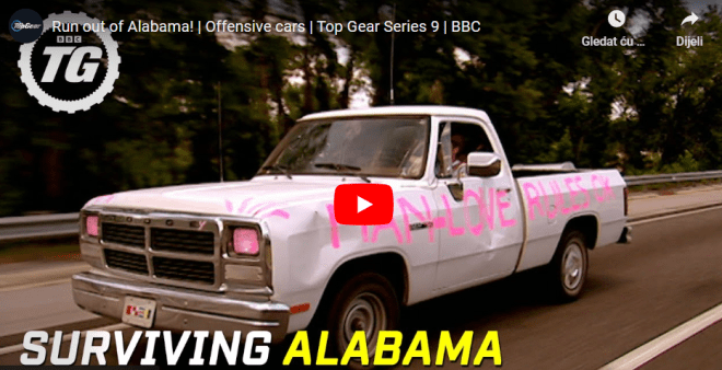 Poznati trojac iz druge (i najbolje) iteracije Top Gear-a, Clarskon, Hammond i May pišu uvredljive poruke jedan drugome na auto s ciljem da ih “lokalci” iz Alabame nagrade na “lokalni”način